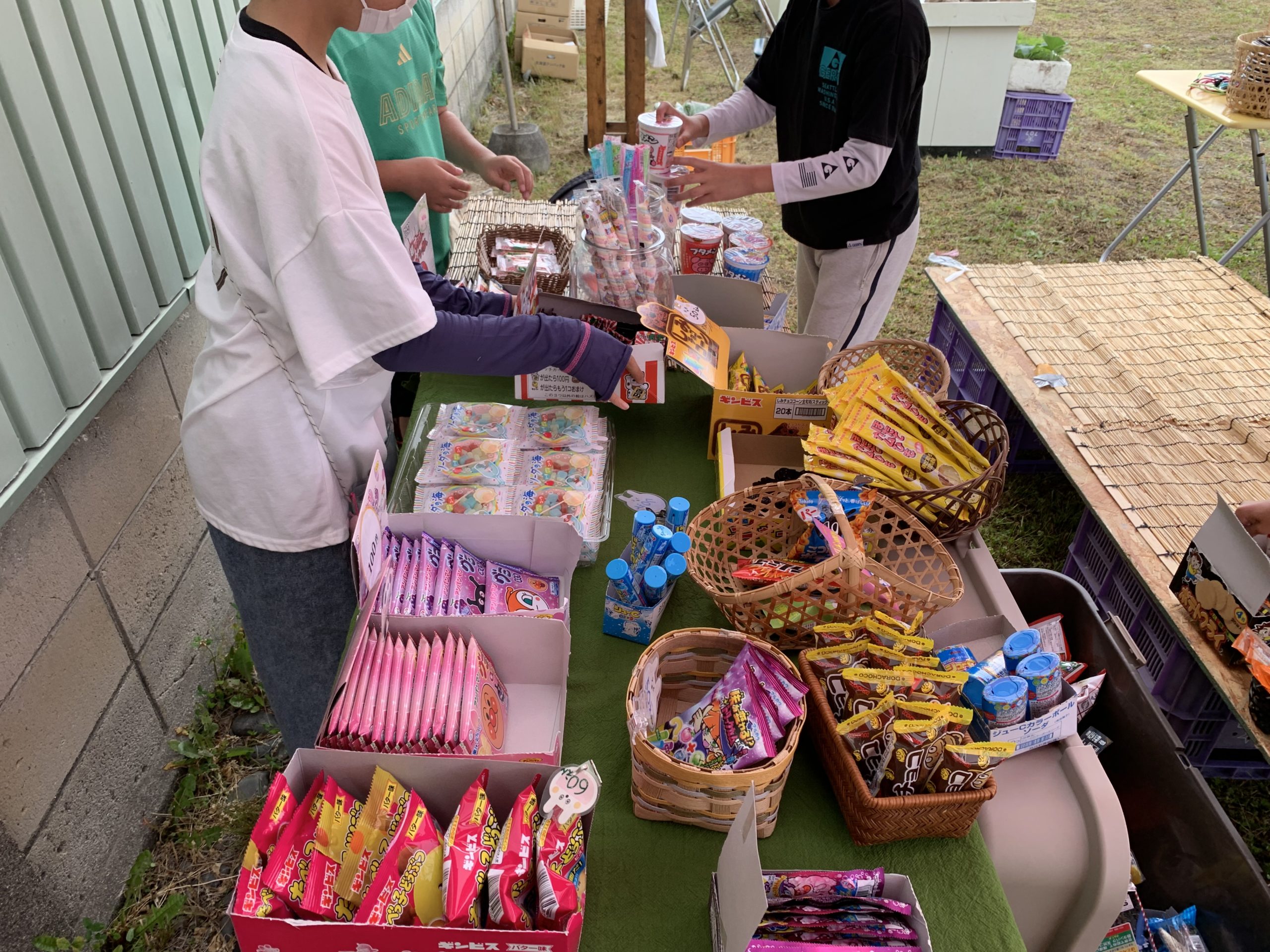 朝早くからだがしを並べたり、くじ引きやスーパーボールすくいの用意をしたりで大忙し。
