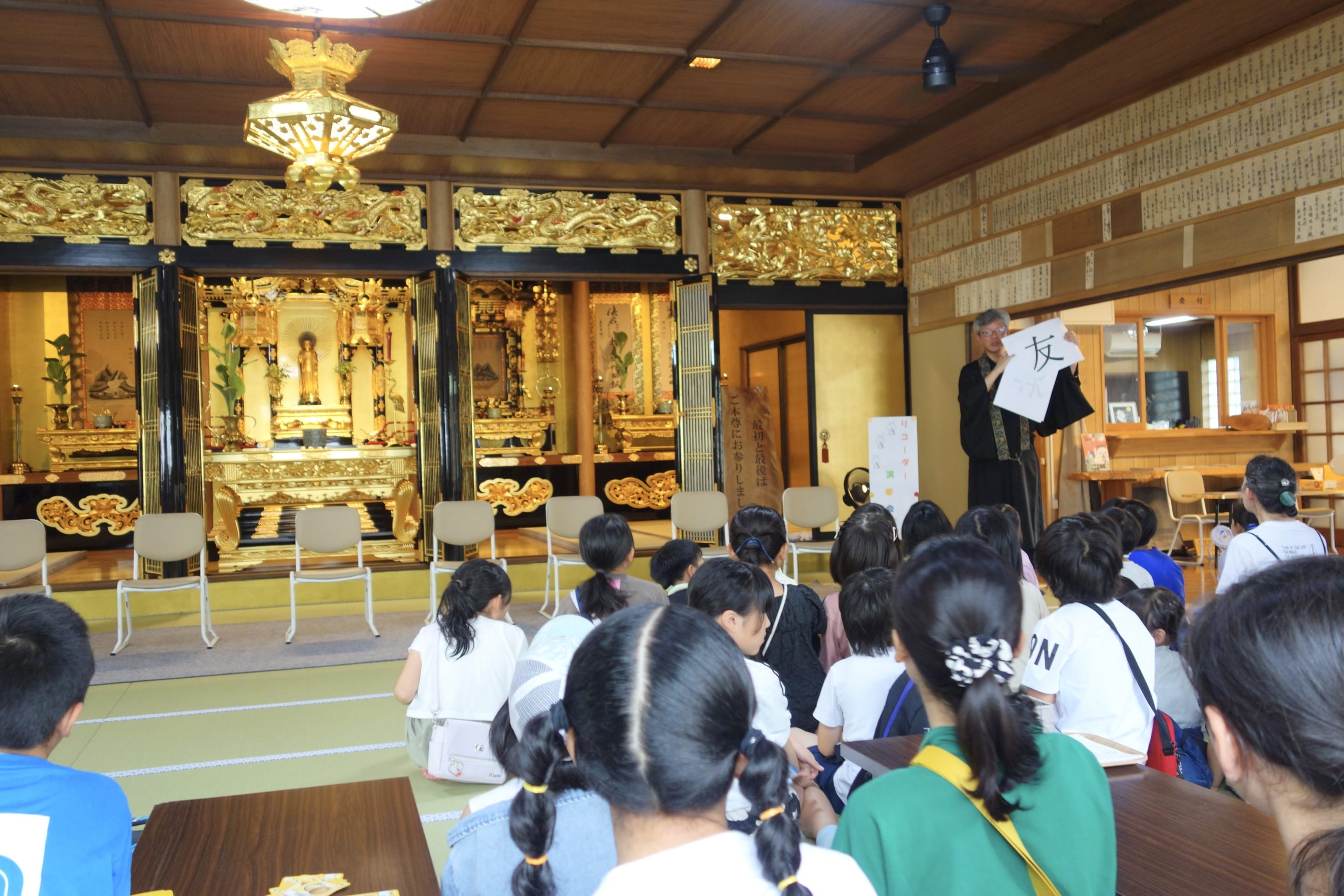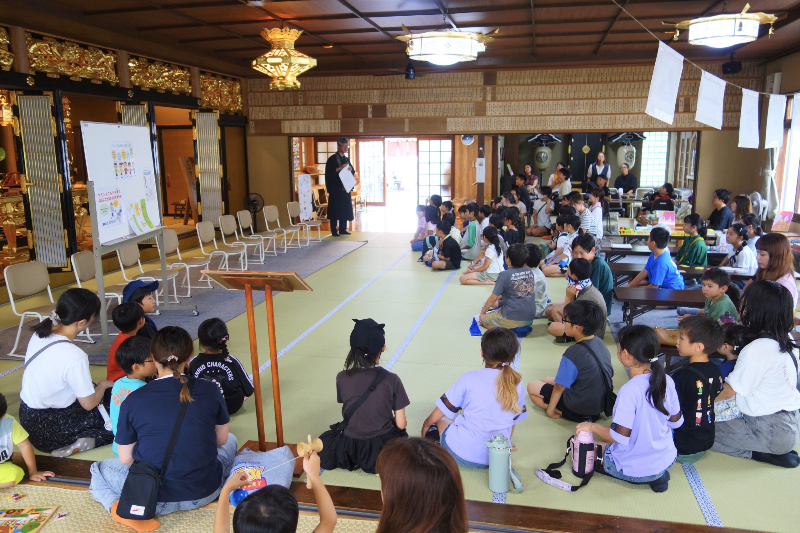 今年で3回目となる「てらこであそぼ」。初回開催時から変わらないのは、必ず仏様に手を合わせて、お話を聞いてから始まることです。