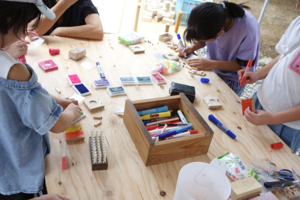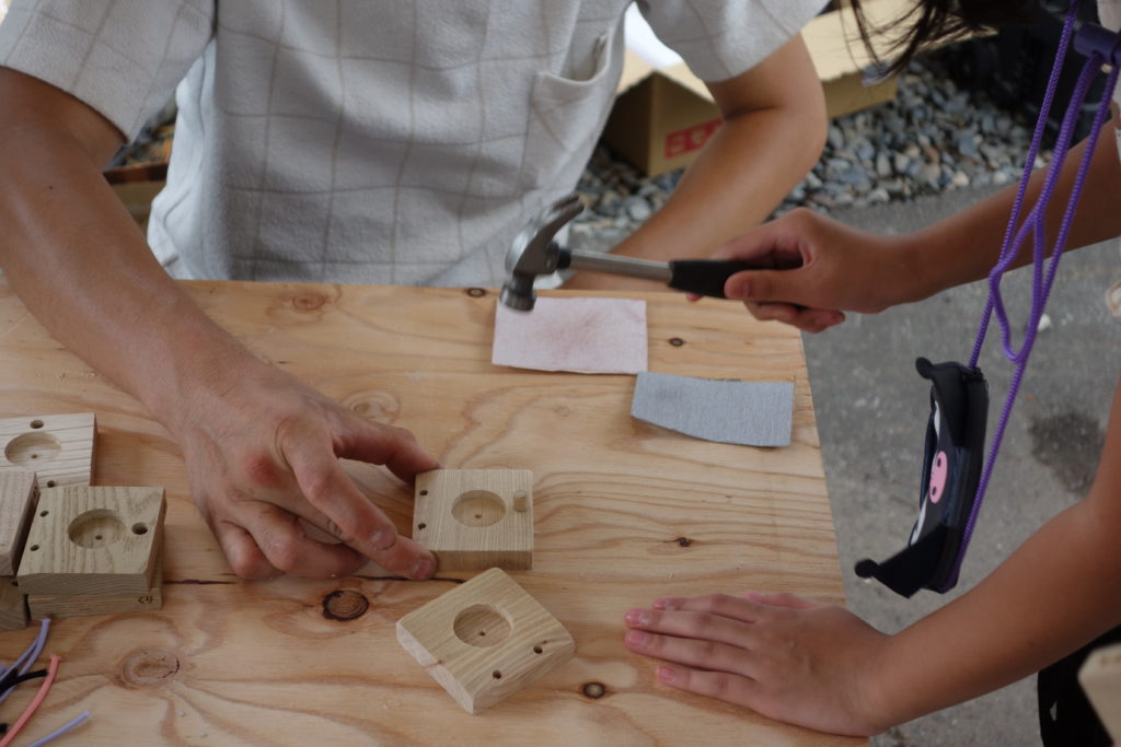 それに加えて今年は、帯広の木材加工会社「中野製作所」さんに出店いただき、道産木材でカスタネットつくりのコーナーも。